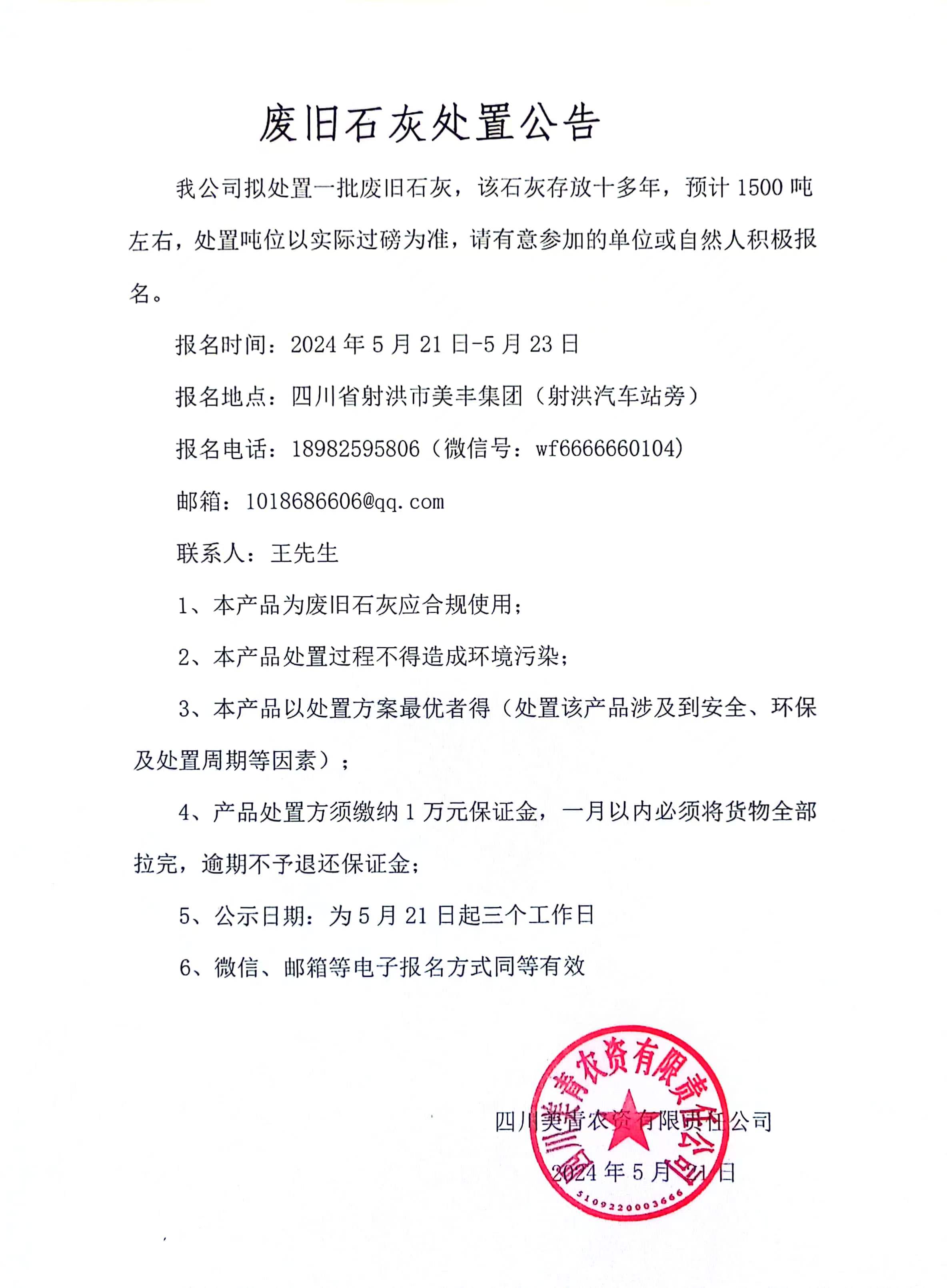 廢舊石灰處置公告